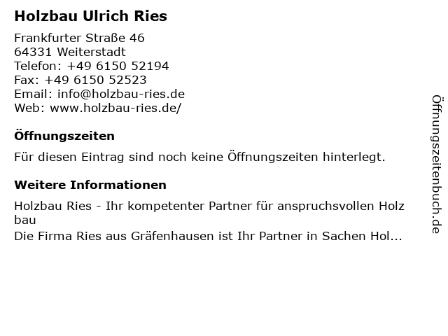 Öffnungszeiten Holzbau Ulrich Ries in Weiterstadt anzeigen | |