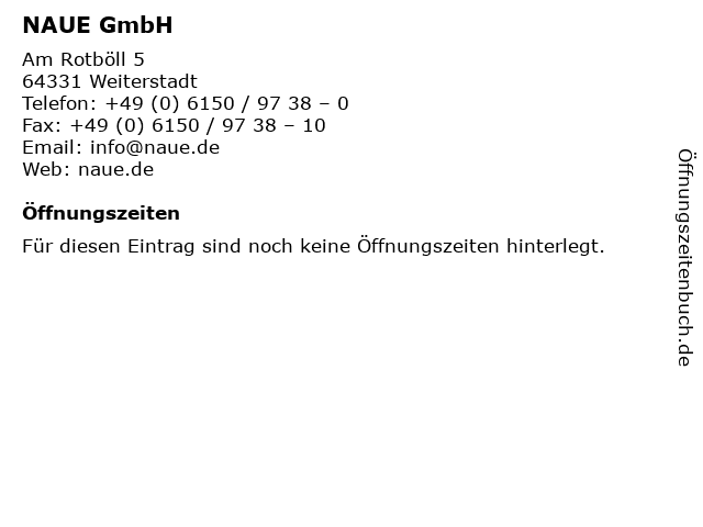 | Öffnungszeiten NAUE GmbH in Weiterstadt anzeigen | |