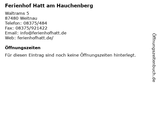 | Öffnungszeiten Ferienhof Hatt am Hauchenberg in Weitnau anzeigen | |