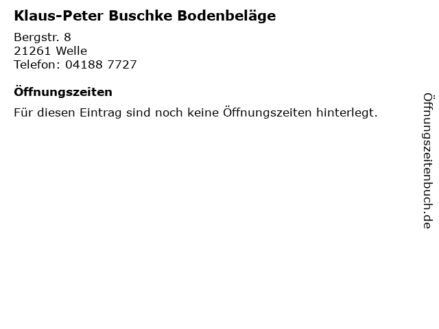 | Öffnungszeiten Klaus-Peter Buschke Bodenbeläge in Welle anzeigen | |