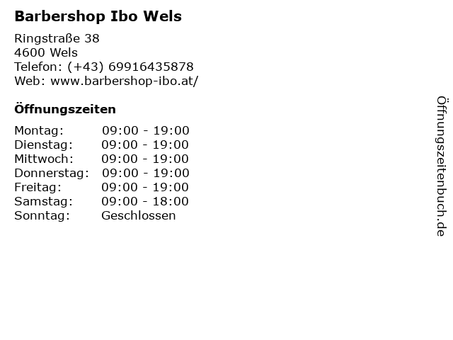 | Öffnungszeiten Barbershop Ibo Wels in Wels anzeigen | |