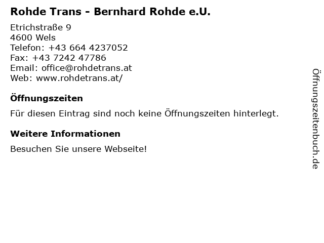 | Rohde Trans - Bernhard Rohde e.U. anrufen | |