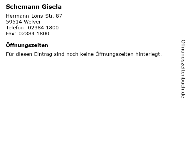 | Öffnungszeiten Schemann Gisela in Welver anzeigen | |