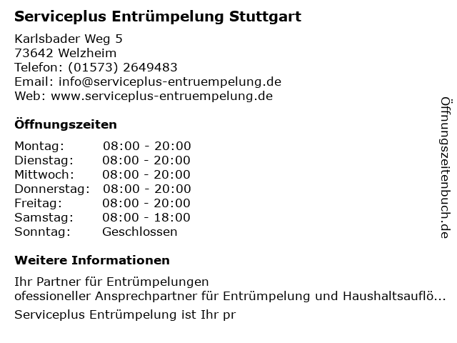 Branchen & Suchbegriffe zu Serviceplus Entrümpelung Stuttgart:büroauflösungen, entrümpelung, entsorgungsdienste, gewerbeauflösungen, kreative wohnlösungen, serviceplus |