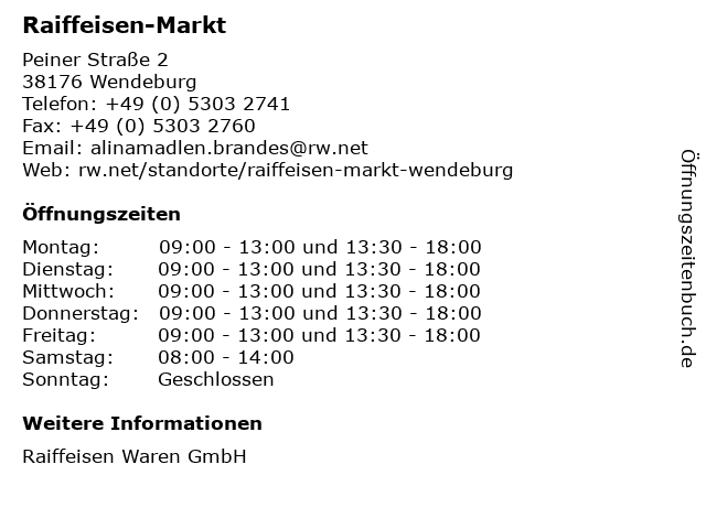 | Öffnungszeiten Raiffeisen-Markt in Wendeburg anzeigen | |