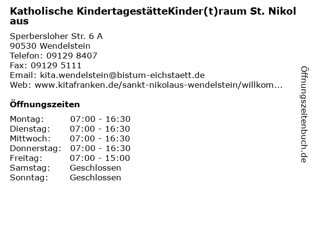 1 Katholische Pfarrei St. Nikolaus, Wendelstein (Büro) (Entfernung: 0,04 km) Sperbersloher Straße 6, 90530 Wendelstein 5 Evangelischer Kindertagesstätte Nikolaus-Herman-Haus (Entfernung: 15,41 km) Röderstraße 9, 90518 Altdorf 6 |