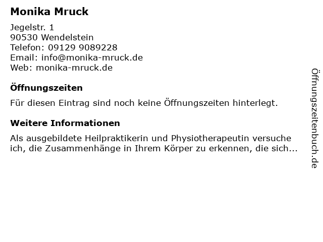 | Öffnungszeiten Monika Mruck in Wendelstein anzeigen | |