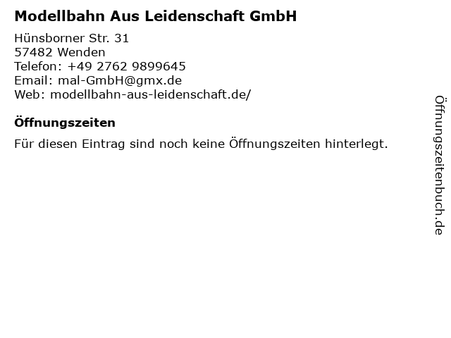 | Modellbahn Aus Leidenschaft GmbH anrufen | |
