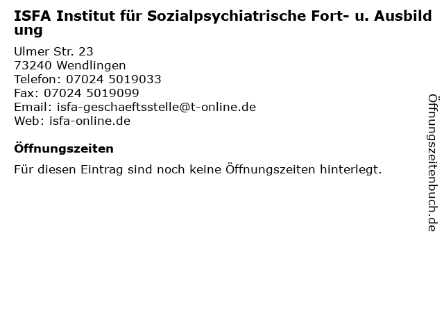 | ISFA Institut für Sozialpsychiatrische Fort- u. Ausbildung anrufen | |