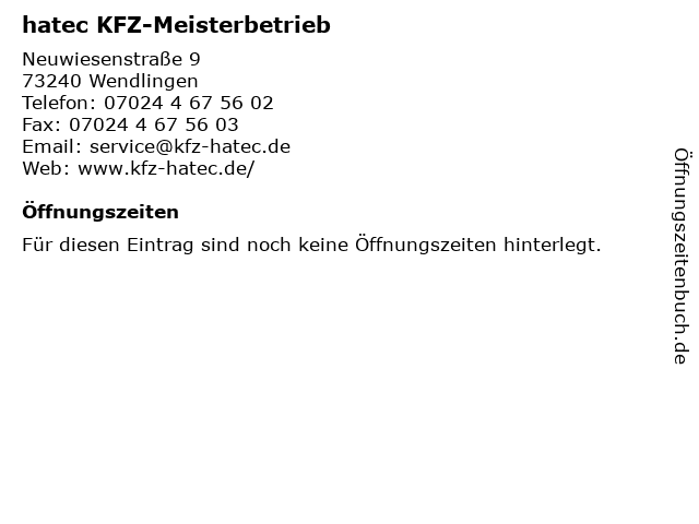 | Öffnungszeiten hatec KFZ-Meisterbetrieb in Wendlingen anzeigen | |