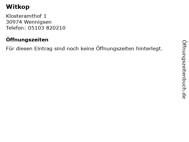 | Öffnungszeiten Witkop in Wennigsen anzeigen | |