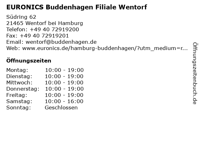 1 Buddenhagen Handelsgesellschaft GmbH & Co. KG, Fil. Wentorf (Entfernung: 0,00 km) Südring 62, 21465 Wentorf 6 |