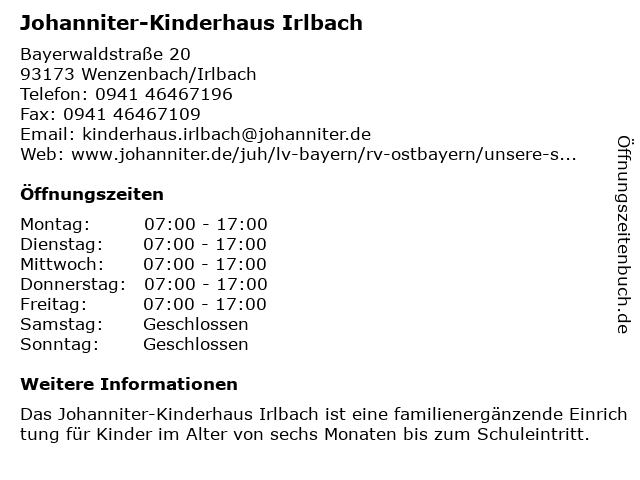 Branchen & Suchbegriffe zu Johanniter-Kinderhaus Irlbach:agentur für kinderbetreuung, gemeinnützige organisation, hilfsorganisation, irlbach, johanniter, kinderhaus, sozialarbeit, verband, wohlfahrtseinrichtung |