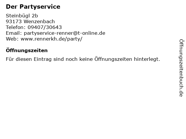 | Öffnungszeiten Der Partyservice in Wenzenbach anzeigen | |
