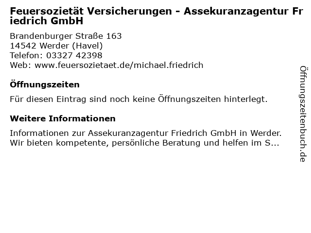 | Feuersozietät Versicherungen - Assekuranzagentur Friedrich GmbH anrufen | |