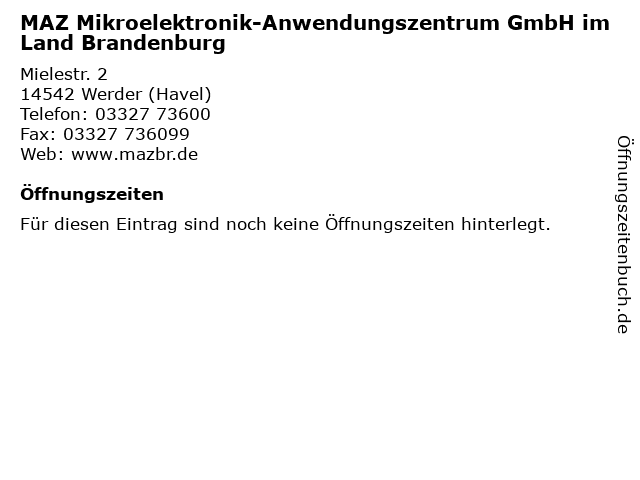 | MAZ Mikroelektronik-Anwendungszentrum GmbH im Land Brandenburg anrufen | |