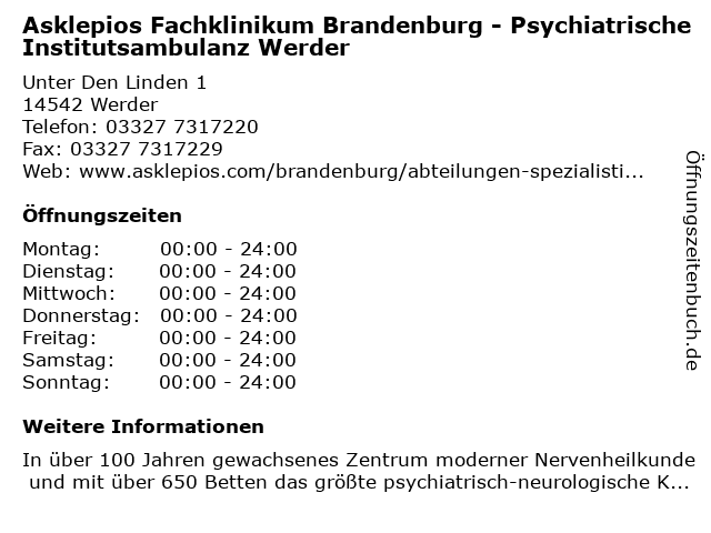 Branchen & Suchbegriffe zu Asklepios Fachklinikum Brandenburg - Psychiatrische Institutsambulanz Werder:asklepios, fachklinikum, institutsambulanz, psychiatrische |