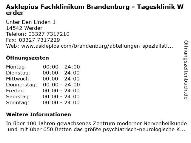 Branchen & Suchbegriffe zu Asklepios Fachklinikum Brandenburg - Tagesklinik Werder:asklepios, fachklinikum, tagesklinik |
