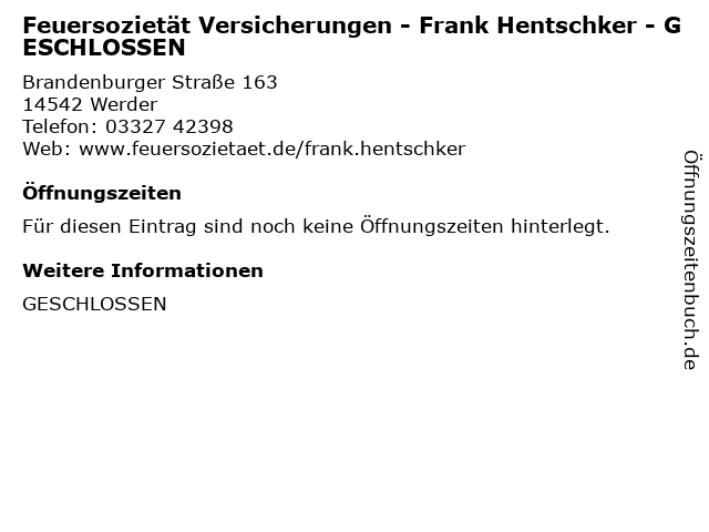 | Feuersozietät Versicherungen - Frank Hentschker - GESCHLOSSEN anrufen | |