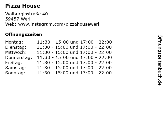 | Öffnungszeiten Pizza House in Werl anzeigen | |