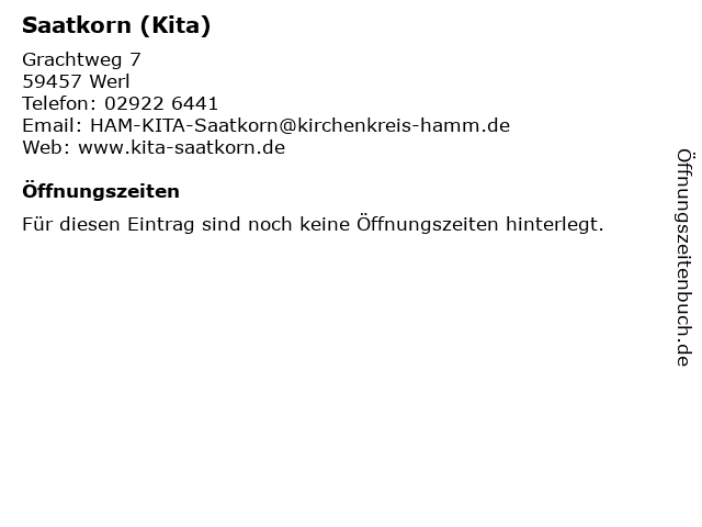 | Öffnungszeiten Saatkorn (Kita) in Werl anzeigen | |
