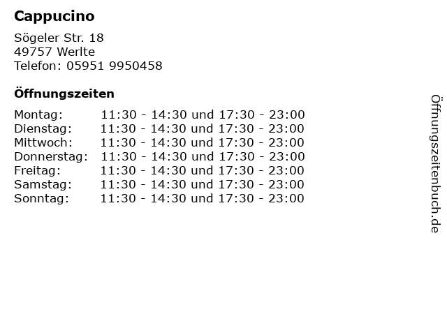 | Öffnungszeiten Cappucino in Werlte anzeigen | |