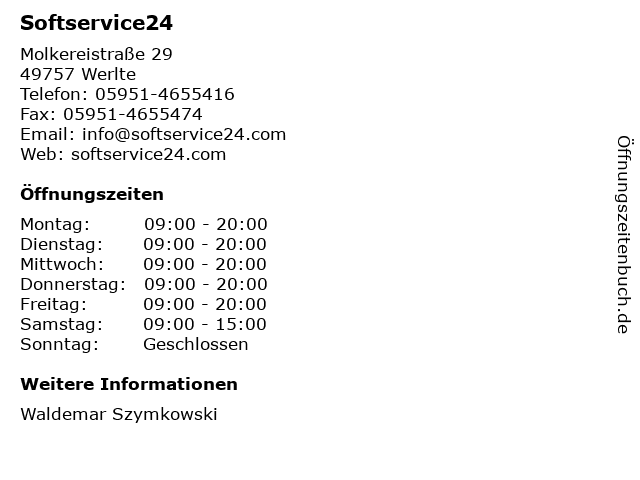 | Öffnungszeiten Softservice24 in Werlte anzeigen | |