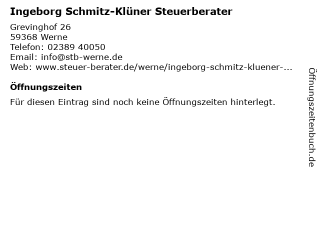 Branchen & Suchbegriffe zu Ingeborg Schmitz-Klüner Steuerberater:ingeborg, klüner, schmitz, steuerberater |