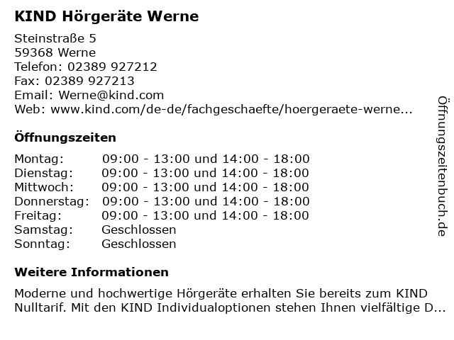| Öffnungszeiten KIND Hörgeräte Werne in Werne anzeigen | |