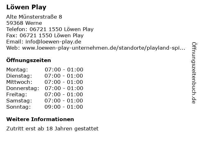 | Öffnungszeiten Löwen Play in Werne anzeigen | |