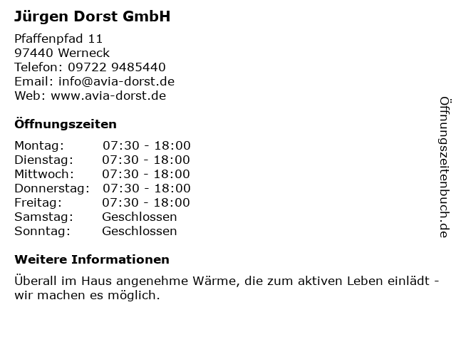 | Öffnungszeiten Jürgen Dorst GmbH in Werneck anzeigen | |