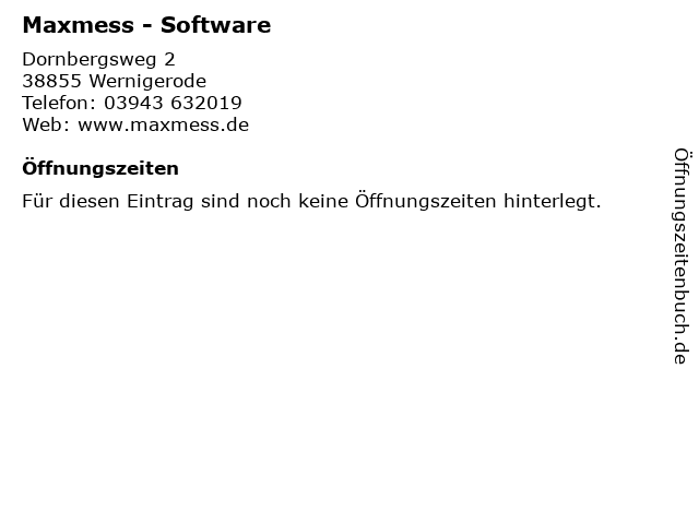 | Öffnungszeiten Maxmess - Software in Wernigerode anzeigen | |