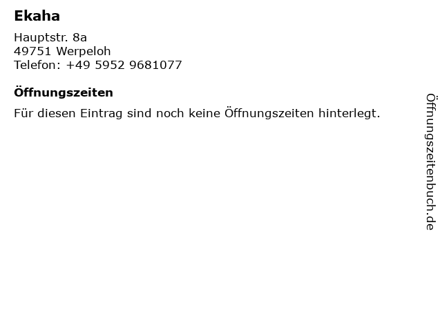 | Öffnungszeiten Ekaha in Werpeloh anzeigen | |