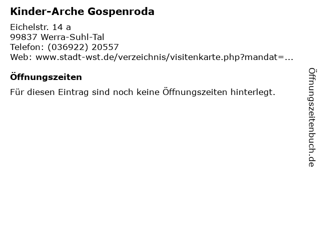 | Kinder-Arche Gospenroda anrufen | |