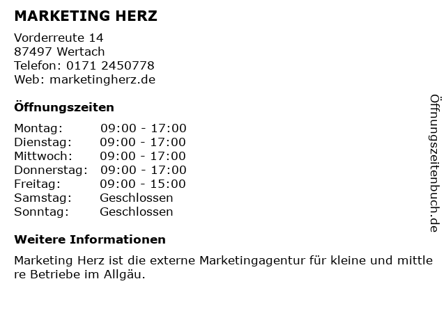 Öffnungszeiten MARKETING HERZ in Wertach anzeigen | |