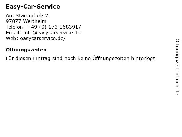 | Öffnungszeiten Easy-Car-Service in Wertheim anzeigen | |