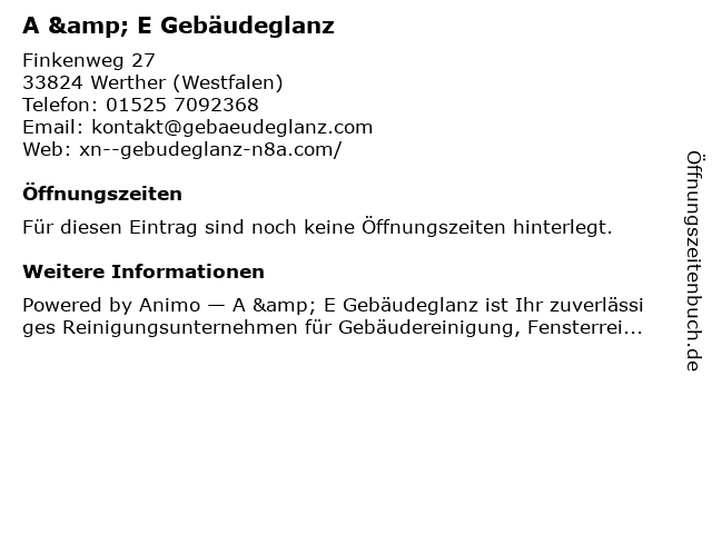 Branchen & Suchbegriffe zu A & E Gebäudeglanz:fensterreinigung, gebäudeglanz, gebäudereinigung, gewerbliche reinigung, gärtner |