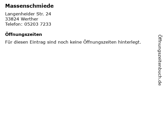 | Öffnungszeiten Massenschmiede in Werther anzeigen | |