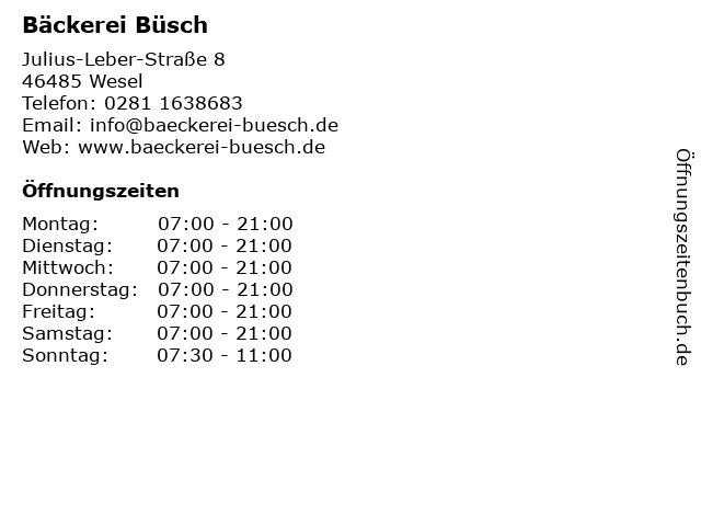 | Öffnungszeiten Bäckerei Büsch in Wesel anzeigen | |