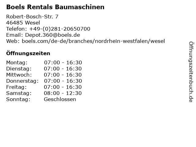 | Öffnungszeiten Boels Rentals Baumaschinen in Wesel anzeigen | |