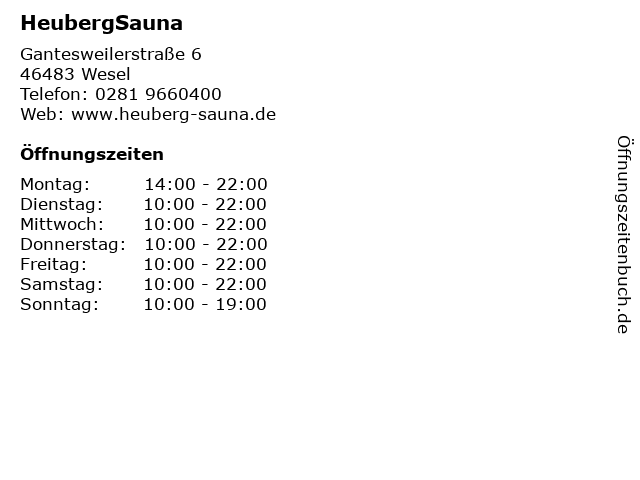 | Öffnungszeiten HeubergSauna in Wesel anzeigen | |