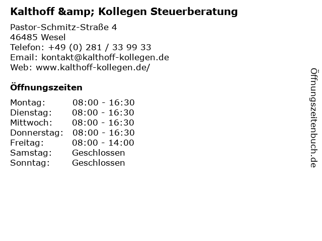1 Kalthoff & Kollegen Steuerberatung (Entfernung: 14,56 km) Kurt-Schumacher-Straße 226 c, 46539 Dinslaken 4 P. Hüser Steuerberatung C. Hilp Steuerberatung (Entfernung: 0,85 km) Rudolf-Diesel-Straße 111, 46485 Wesel 6 |