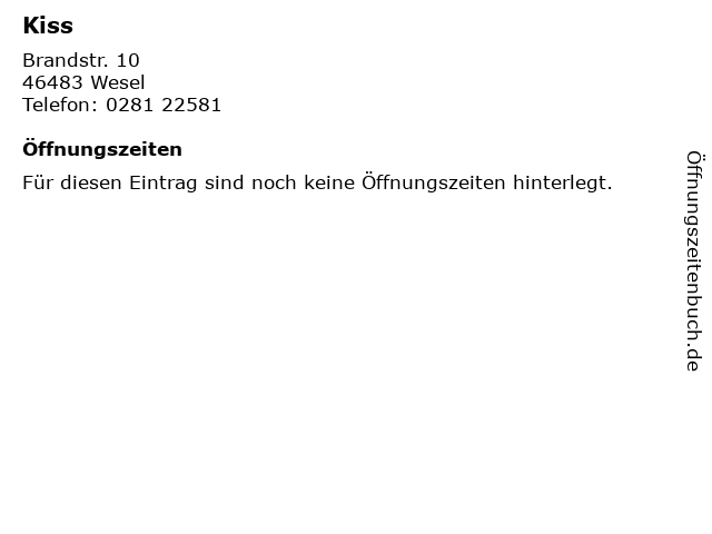 | Öffnungszeiten Kiss in Wesel anzeigen | |