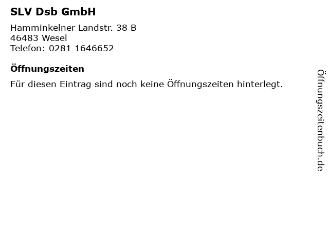 | Öffnungszeiten SLV Dsb GmbH in Wesel anzeigen | |