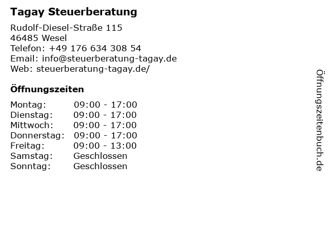 | Öffnungszeiten Tagay Steuerberatung in Wesel anzeigen | |
