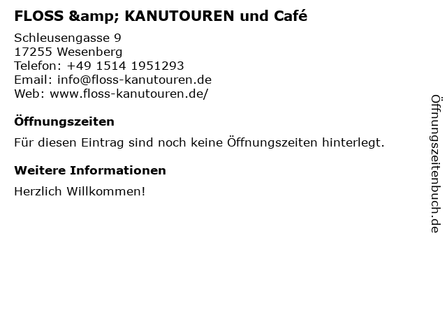 | FLOSS & KANUTOUREN und Café anrufen | |
