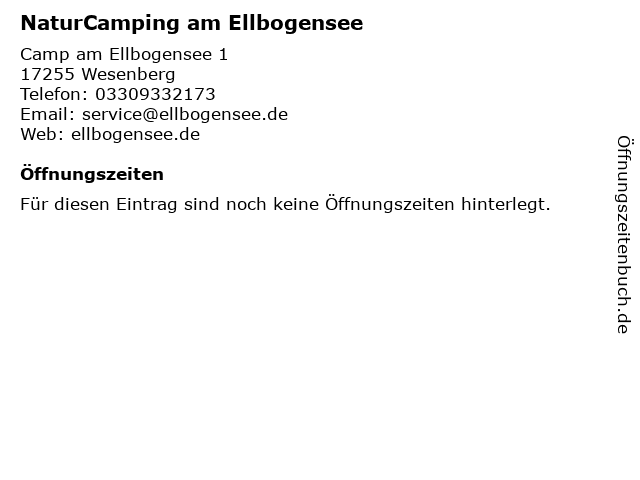| Öffnungszeiten NaturCamping am Ellbogensee in Wesenberg anzeigen | |