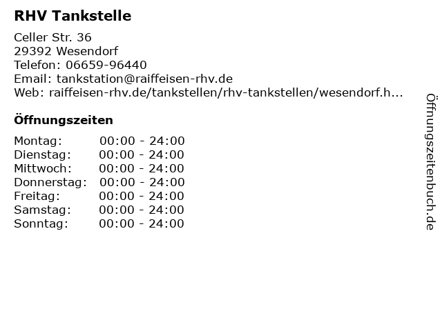 | Öffnungszeiten RHV Tankstelle in Wesendorf anzeigen | |