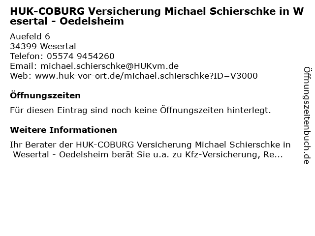 | HUK-COBURG Versicherung Michael Schierschke in Wesertal - Oedelsheim anrufen | |