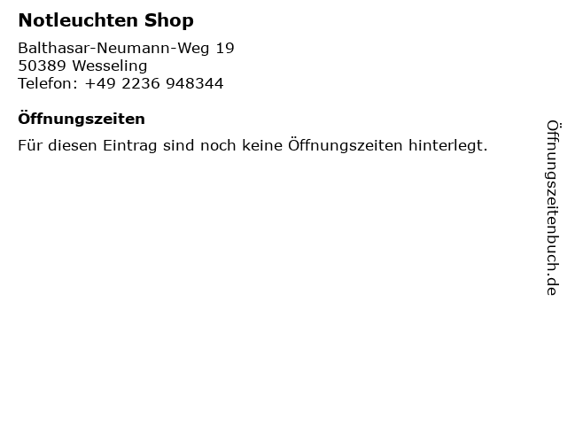 | Öffnungszeiten Notleuchten Shop in Wesseling anzeigen | |